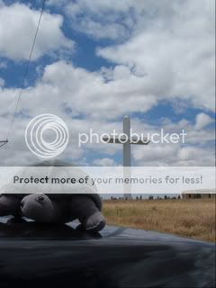 The last day of our trip began in Oklahoma City and continued on through Texas into New Mexico. We made a few unusual stops, the first of which was a roadside attraction in Groom, Texas: the biggest cross in the Western Hemisphere. Now we didn't feel the need to get up close and personal to the giant white structure, so we stopped a ways down the road and took a few pictures with Velociraptor.